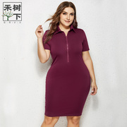 纯色翻领大码连衣裙直筒宽松显瘦春Lady Large size dress summer