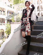 【KiKi法代】maje 19春夏 拼色玫瑰印花衬衫领系带短连衣裙RILLER