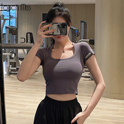 TOUCH MISS 时尚设计性感弹力运动上衣女跑步健身显瘦短款瑜伽T恤