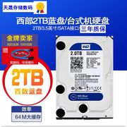 WD/西部数据 西数蓝盘2T 3.5寸台式机硬盘SATA3.0 家用 三年质保
