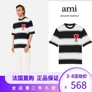 法国代购直邮Ami Paris短袖女新款条纹刺绣大爱心情侣款圆领T恤男
