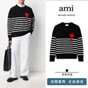 法国代购直邮 Ami Paris 21新款园领条纹毛衣男女款高领爱心毛衣