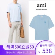 法国代购直邮Ami Paris短袖女22新款刺绣中爱心情侣款圆领T恤男