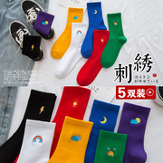 袜子女中筒袜ins潮纯棉彩色长袜可爱日系长筒运动高筒小腿袜全棉