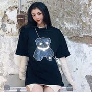 we11done夏季新款珍珠链3M反光短袖t夜光熊宽松OS圆领T恤男女同款