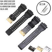 兼容卡西欧树脂橡胶表带GA110 GD120GA-100亮面手表带黑金非原装