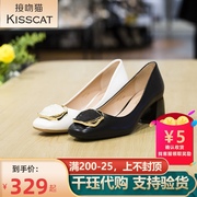 KISSCAT/接吻猫2021夏新商场同款金属扣粗跟羊皮女单鞋KA20102-11