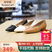 KISSCAT/接吻猫女鞋2021春季新款低粗跟尖头羊皮女单鞋KA20556-14