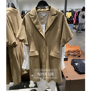NIYA UR2021春夏气质V领长款单排扣西装灯笼袖连衣裙WG15S7AN2013