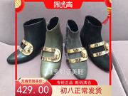 STELLALUNA露娜专柜正品2017秋冬牛皮粗跟中跟金属短靴SLP317075