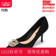 Daphne/达芙妮2019春新款性感绒细跟尖头高跟鞋单鞋女1019101158