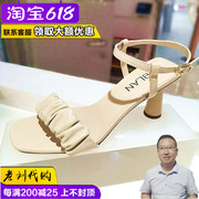 千百度伊伴女鞋2021夏季新款国内正品代购时尚高跟褶皱羊皮女凉鞋