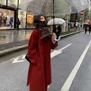 欧洲站2020冬款复古红色双面羊绒大衣女中长款赫本风气质毛呢外套