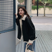 欧洲站2020冬款休闲百搭羊羔毛皮衣外套女韩版宽松加厚机车夹克潮