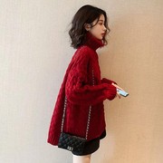 欧洲站2020秋冬新款新年红色高领毛衣女韩版宽松慵懒风加厚针织衫