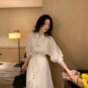 WEYLAYNY法式复古白色连衣裙女夏2021新款女神范收腰气质显瘦长裙