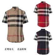 Burberry博柏利巴宝莉经典大格子休闲商务短袖衬衫卡其红深蓝