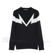 特价NeIL BarreTT NB 17秋冬男士黑白蓝撞色闪电羊毛线衫针织衫