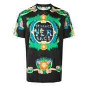 VERSACE范思哲春夏太阳神花卉男士黑色圆领短袖T恤