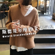 折扣 瑞典Acne Deborah l wool纯羊毛深V领宽松女装毛衣 杨幂同款