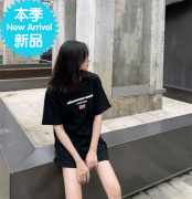 Alexander wang亚历山大王字母印花logo 旗帜刺绣休闲纯棉短袖T恤