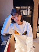 FENDI芬迪大尺码小怪兽胶皮眼睛针织棉圆领长袖卫裤厚棉T黑色男女款