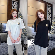 FENDI芬迪大尺码老佛爷布贴满钻运动休闲圆领短袖T恤男女款黑白上衣
