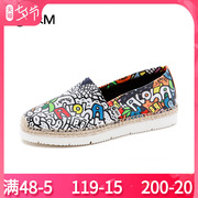 jm快乐玛丽女鞋19春夏新款手绘涂鸦松糕麻底渔夫鞋套脚懒人鞋052W