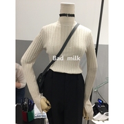 bad milk批发 bluepops 韩风好质量百搭纯色波浪边半高领针织衫薄