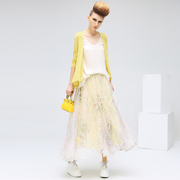 COCOBELLA 2017春季新品长款飘逸雪纺拼接百褶女半身裙子DS449