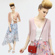 COCOBELLA破洞毛边五分袖短款空调衫女百搭薄款针织开衫YN295