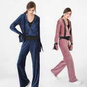 [尖叫价]COCOBELLA金丝绒套装女短外套及休闲校服裤两件套TA78
