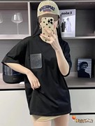 LOEWE/罗威 夏季新款经典口袋皮质字母logo短袖男宽松圆领T恤女