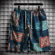 男士夏季休闲短裤青年宽松五分裤松紧系绳中裤百搭棉麻沙滩裤花裤