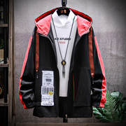 男士夹克秋冬季新款连帽外套青年时尚百搭上衣拼接男装风衣棒球服