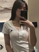 Abercrombie&Fitch夏af亨利T恤女短袖V领修身弹力显瘦打底衫上衣