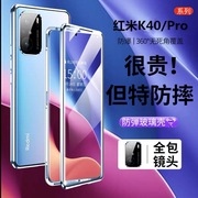 适用红米Redmi K40手机壳全包K40Pro磁吸双面玻璃保护套金属防摔+