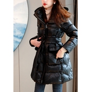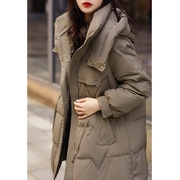 ZADY2021秋冬新款时尚气质活力连帽抽绳收腰工装风羽绒服中长款