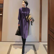 ZADY~羊毛针织连衣裙女高领长袖套头时尚中长款毛衣羊绒衫新款