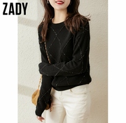 ZADY亮片羊毛羊绒开衫/套衫上衣女2020秋冬新款气质亮丝菱格毛衣