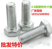 10MM 4.8级平头镀锌外六角螺丝 白锌外六角螺栓 M10*16~M10*150