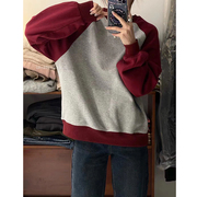 zrstudio刺绣卫衣女加绒2022秋冬新款韩版红色设计感小众拼色上衣