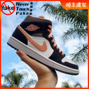 Air Jordan 1 Mid AJ1 乔1 中帮 黑粉白蜜桃女子篮球鞋DH0210-100