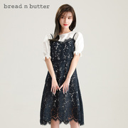 bread n butter经典款圆领短袖衬裙搭配蕾丝吊带套头连衣裙两件套