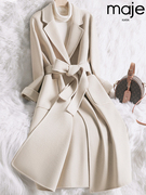 MAJE KARA 双面羊绒大衣女2022年秋冬新款高端修身中长款毛呢外套