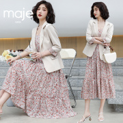 MAJE KARA 碎花吊带洋装女夏外搭罩衫质感高级两件式套装西装外套
