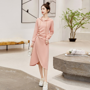 MAJE KARA 气质粉色开叉洋装女款2023年春装显瘦长袖连帽运动衫裙