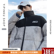 YIPINKU 冬季新款潮牌外套男宽松拼接撞色保暖羽绒棉服夹克男立领