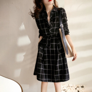 Sandro Moscoloni春夏新款韩版法式格子衬衫裙显瘦收腰长袖连衣裙