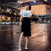 Sandro Moscoloni夏白T恤半身裙洋气显瘦减龄网红炸街时尚两件套
